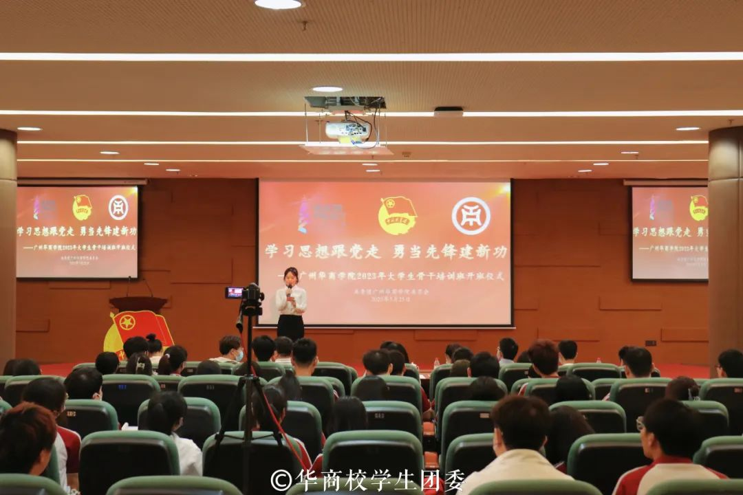 伴随着嘹亮的中国共产主义青年团团歌,开班仪式正式开始。会上,校团委陈刚书记宣读《共青团广州华商学院委员会关于2023年大学生骨干培训班组织架构的决定》《共青团广州华商学院委员会关于成立“学习思想跟党走 勇当先锋建新功”大学生骨干班讲师团的通知》。