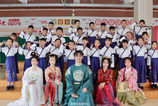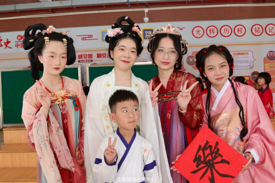 身着不同形制汉服的同学们轻舒广袖,在优雅的古风伴奏声中,款款而行,仿佛穿越时空。举手投足间尽显中华礼仪之美,展示中华传统服饰独特的韵味和美感。活动结束后,我校华韵文华社的同学们积极与小学生们互动,为他们讲解和传达汉服、中华文化相关的小知识,让清燕小学的同学们充分感受传统文化和汉服的魅力。