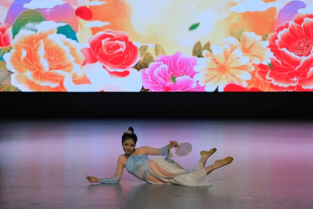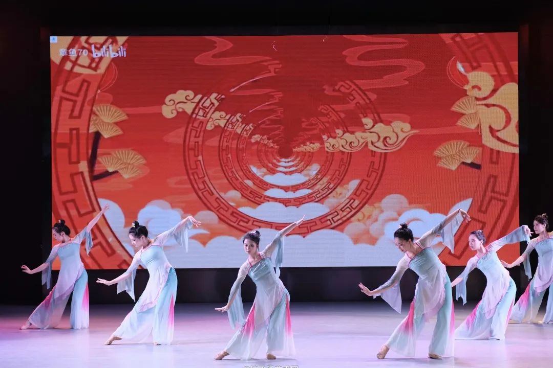 《盛世欢歌》隆重开场。喜庆激昂的乐声响起,舞蹈队的队员们犹如美丽的白鹤,踩着配乐鼓点,轻盈雀跃的舞步纷纷亮相,俨然百花齐放,摇曳生姿。