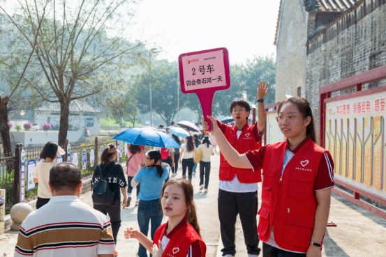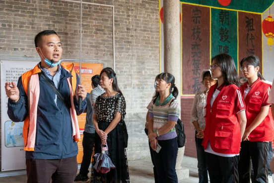 ——第一站,江头村农会旧址和陈伯忠故居。活动现场,华商志愿者们一行深入瞻仰江头村农会旧址和陈伯忠故居,认真聆听陈伯忠烈士的革命事迹,参观了革命先烈当时战斗生活的图片、实物,重温了那段坎坷的革命历程,学习江头村农会革命历史和陈伯忠烈士精神。随后,他们充当红色故事宣讲员,耐心地为来到旧址的游客们讲述江头乡农会和陈伯忠烈士的那段烽火岁月,讲述西江农民运动的故事。在宣讲的过程中,同学们深入了解到江头乡农会的成立背景、活动内容和影响,感受农民运动的伟大意义,感受革命先烈为党的事业和共产主义理想敢于斗争、勇于牺牲的英雄气概和革命精神,真正在学思践悟中传承革命精神,筑牢党性根基。志愿者们还为旅客们热情服务、答疑解惑,积极指引旅客到指定的乘车地点上车,确保大家有序乘车、安全乘车。