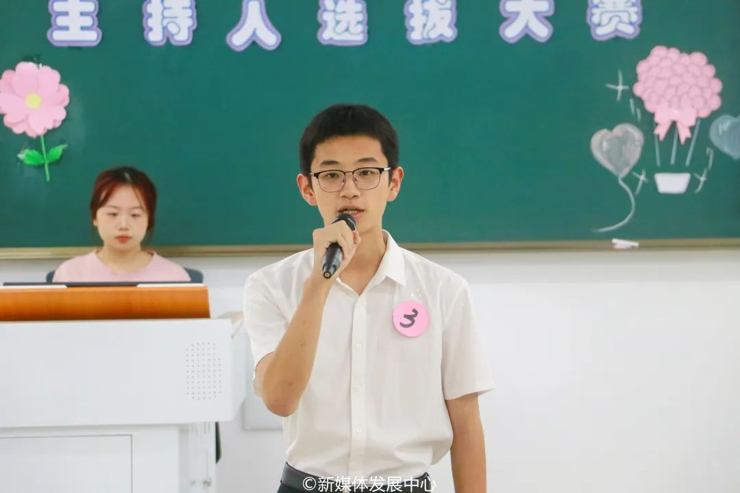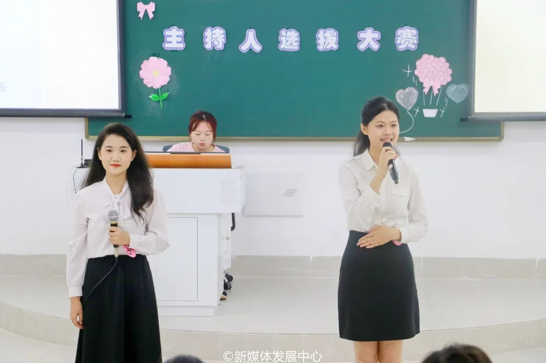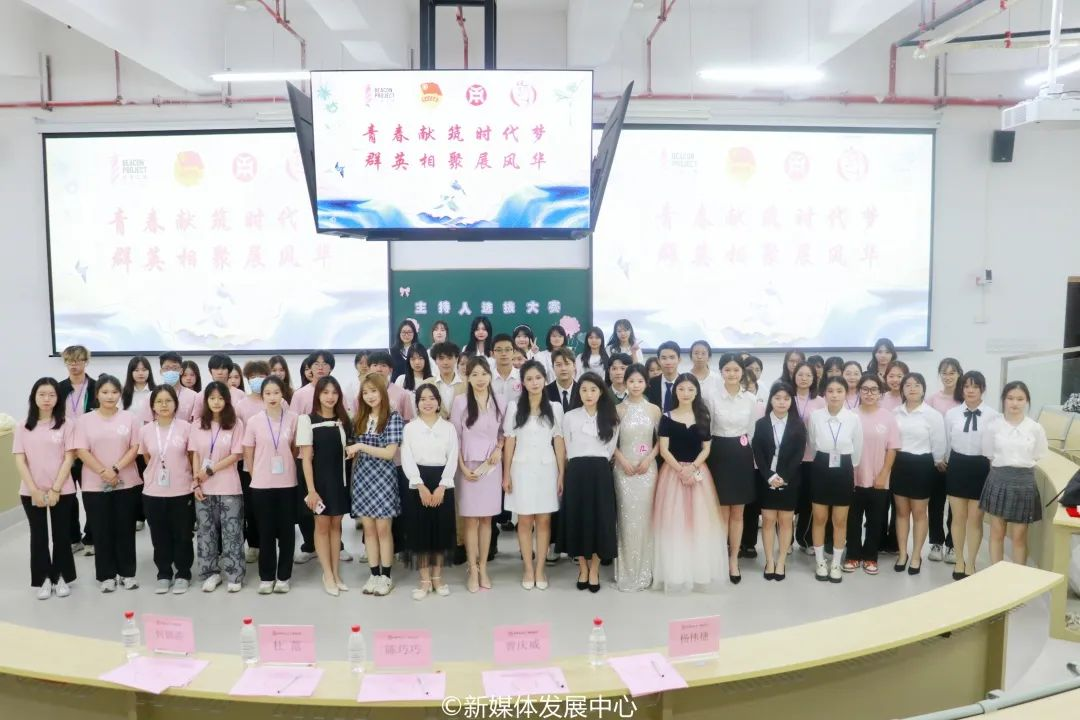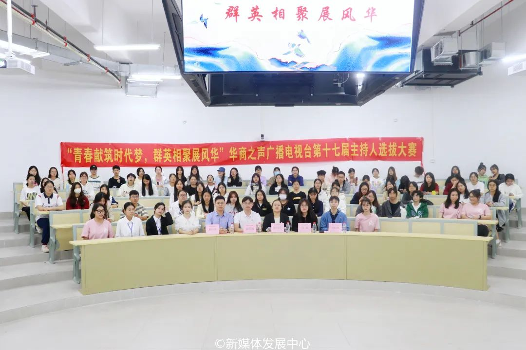 声动华商,尽显青春风采。满腔热忱,新星与时争辉。为推动校园文化建设,激发华商青年活力,为华商提供展现自我、提升自我、锻炼自我的平台,提高学生综合素质、挖掘具有潜质的优秀播音主持人才,在学校党委支持、学校团委具体指导下,华商之声广播电视台于2023年11月12日在肇庆校区16号楼212举行“青春献筑时代梦,群英相聚展风华”第十七届主持人选拔大赛。校团委陈巧巧老师、经济贸易学院团委书记曾庆威老师、传播与传媒学院团委副书记杨伟捷老师、教师教育学院团委副书记杜范老师以及文学院团委副书记何锦浩老师担任本次大赛评委。