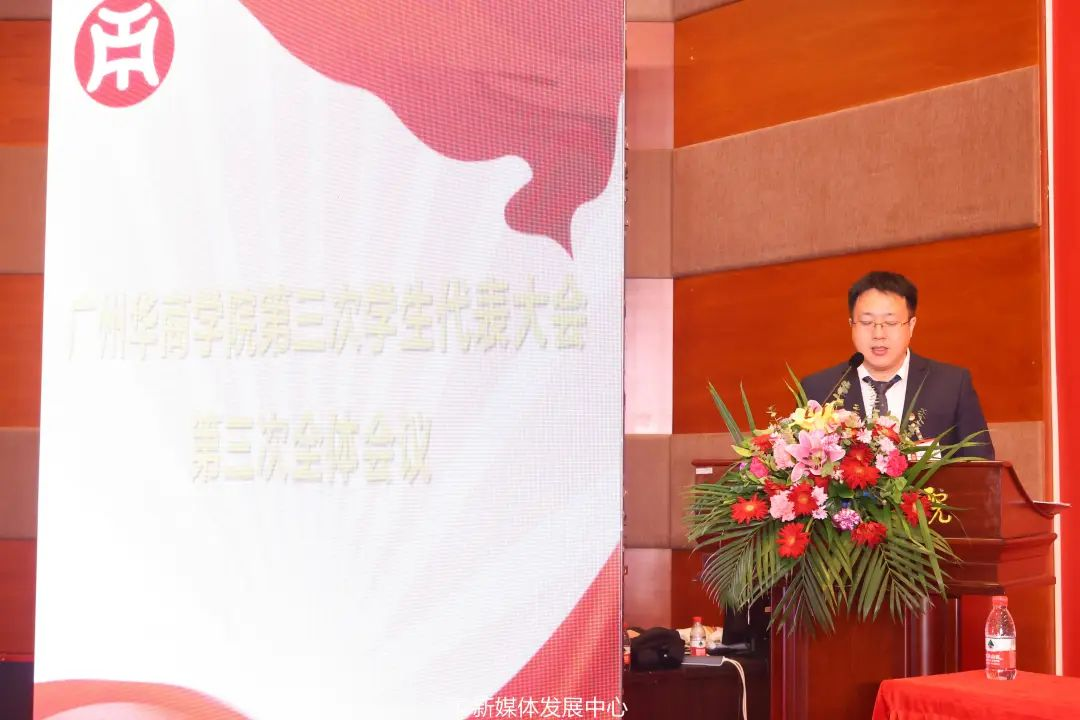 12月2日16:30,广州华商学院第三次学生代表大会闭幕式暨第四次全体会议在广州校区华商会议中心四楼报告厅、肇庆校区8号楼108、109召开。出席本次会议的人员有:学校党委副书记、纪委书记、王锦秀副校长,校长助理、校党委委员许娜同志,校党委委员、数据科学学院党委副书记蒋大锐副院长,校团委陈刚书记,校团委团干,二级学院团委书记、副书记、学生会指导老师以及全体代表。