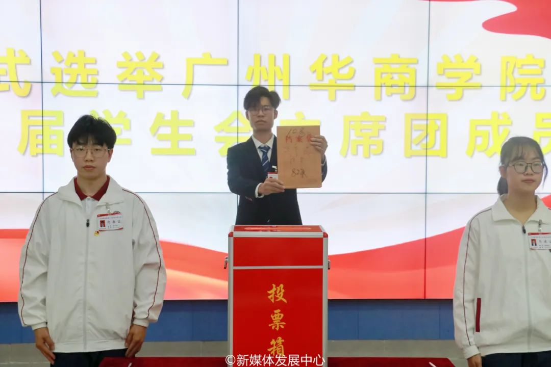 12月2日15:30,广州华商学院第三次学生代表大会主席团第三次全体会议召开。会上,总监票人报告大会选举情况,确定当选人名单,确定广州华商学院第三届学生会委员会第一次全体会议的召集人和会议时间。