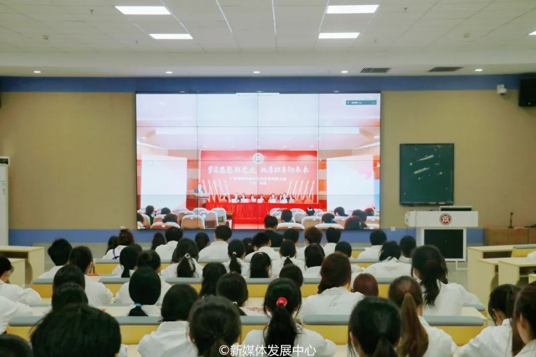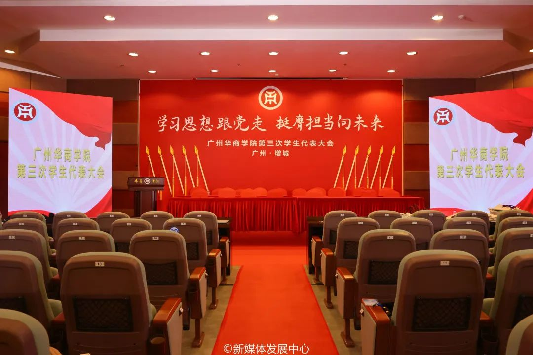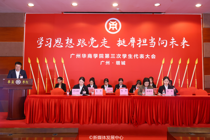 点燃青春火炬,书写未来篇章。高举团旗跟党走,唱响青春梦之歌。为深入学习贯彻党的二十大精神,全面贯彻落实全国学联二十七大工作部署,持续深化我校学生会组织改革,引领华商青年学子在为实现中华民族伟大复兴中国梦的不懈奋斗中谱写青春华章,在学校党委、省学联、学校各职能部门、各学院党委的关心与支持下,12月2日,广州华商学院第三次学生代表大会顺利召开。本次大会广州校区设主会场、肇庆校区设分会场,两校区全程连线直播。