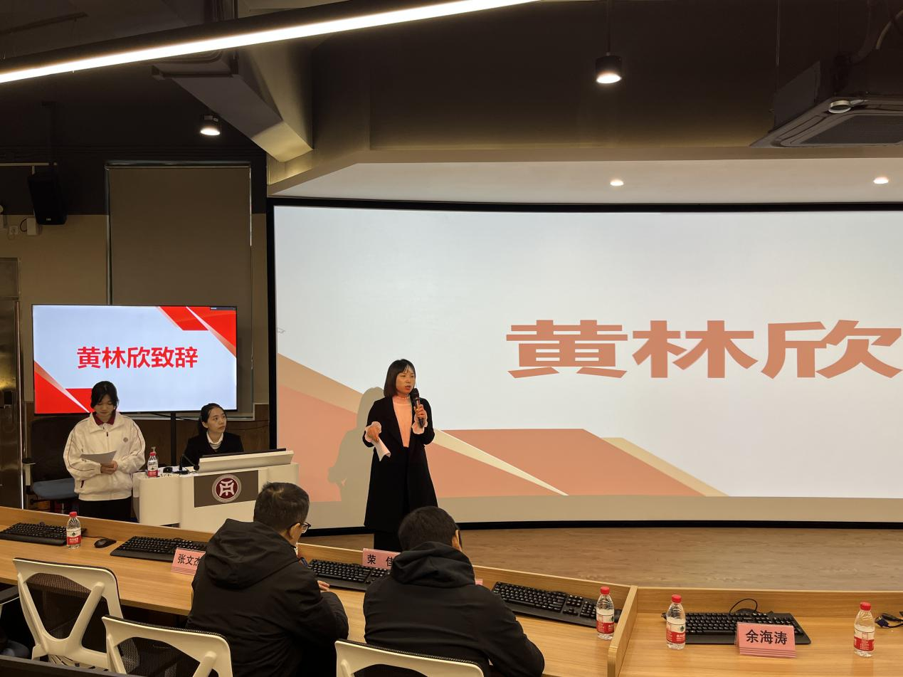 新塘工行公司金融部(乡村振兴办公室)产品经理胡灿立介绍高校客群服务方案,结合学校意愿做好资金管理、财务规划等个人金融业务知识推广和服务。