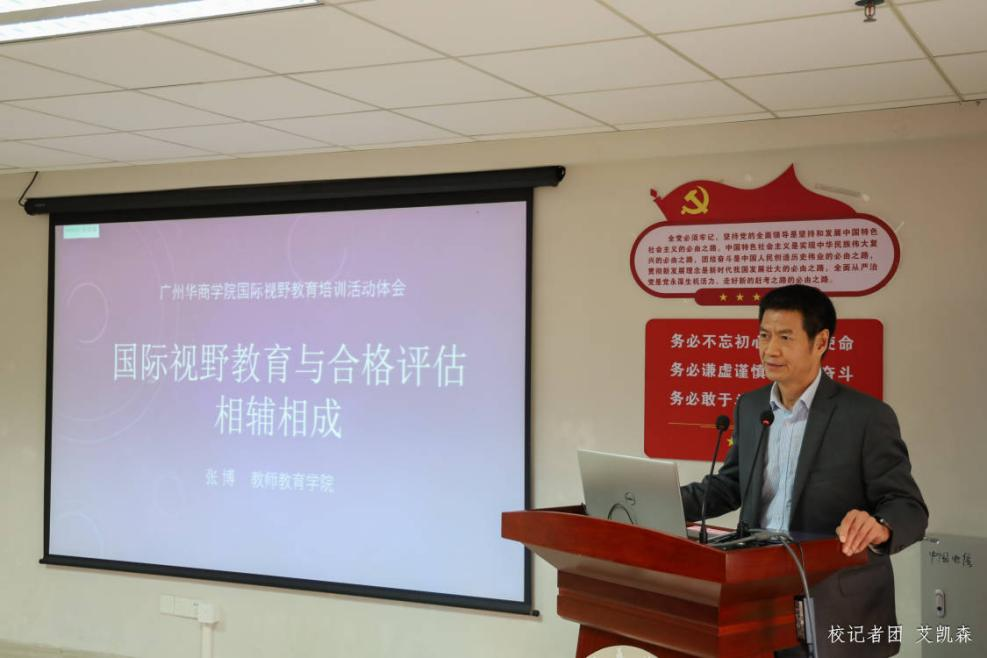教师教育学院副院长张博结合培训所感,细谈国际视野意味什么?我们做了什么?我们还需怎么做?并就此提出“国际视野教育与合格评估相辅相成”的观点。