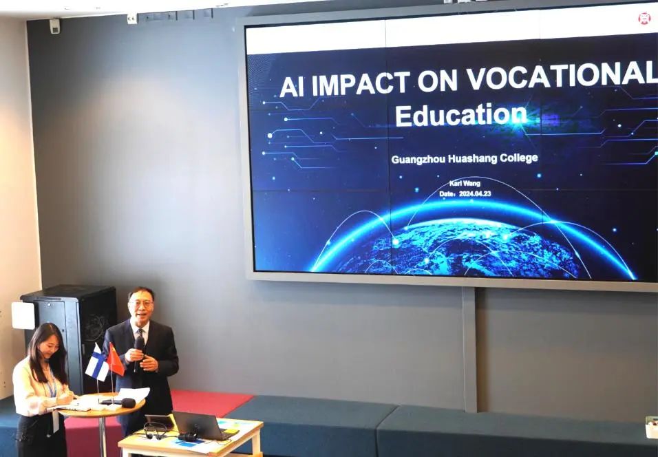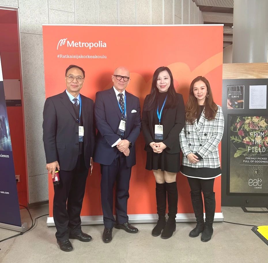 4月22至24日,广州华商学院副校长廖伊曼博士、国际交流合作处处长王文忠、副处长熊子珂一行3人应邀赴芬兰赫尔辛基参加2024中芬联合发展论坛。此次论坛汇聚了芬兰应用大学联盟成员及20多所中方院校代表,与会人员共同探讨在教育全球化背景下,产教融合、AI与教育、教师培训转型、跨国人才培养等话题。此次论坛不仅加深了中芬两国在应用型大学教育领域的彼此了解,更为两国的应用型高校合作提供了平台。