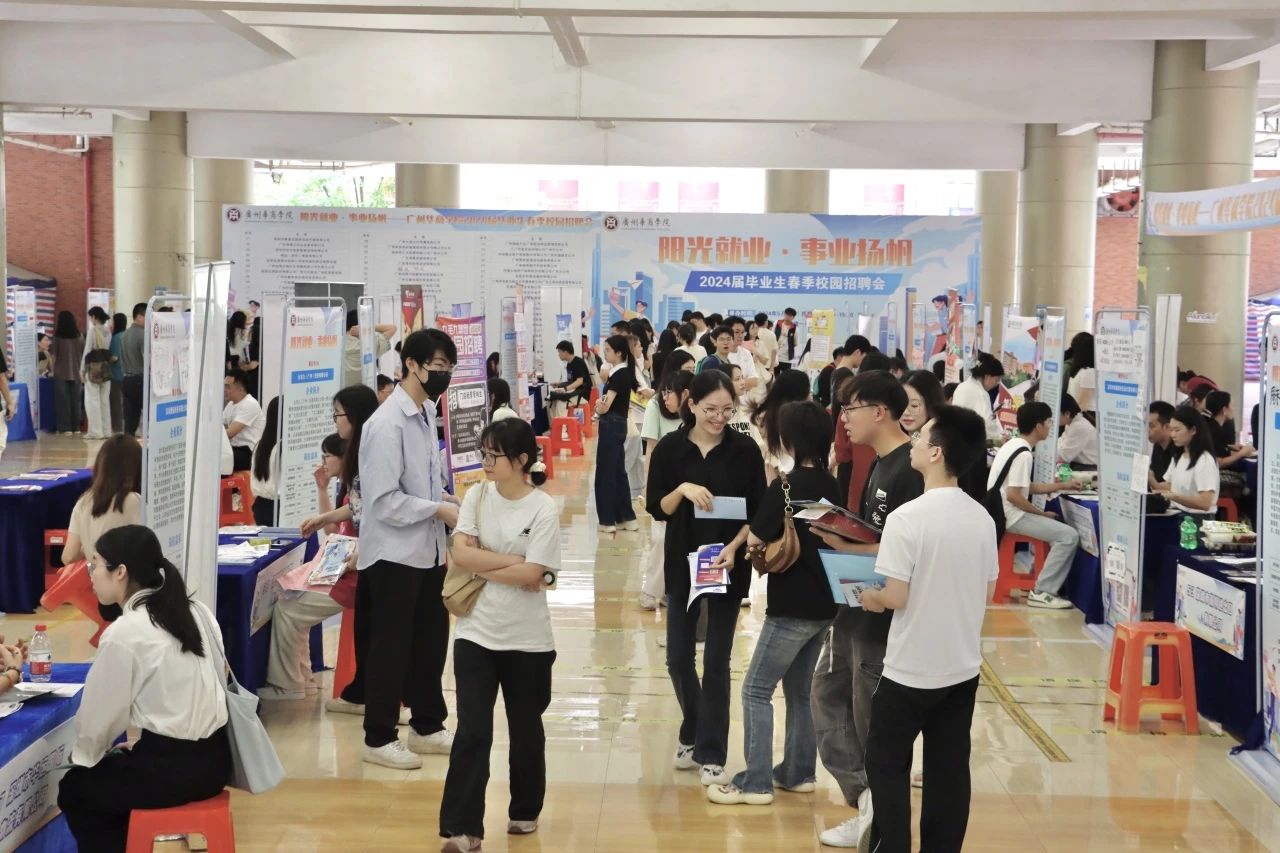 5月7日,经过一夜雨水的洗礼,广州华商学院迎着灿烂阳光,在启智楼举办阳光就业•事业扬帆——广州华商学院2024届毕业生春季校园招聘会。