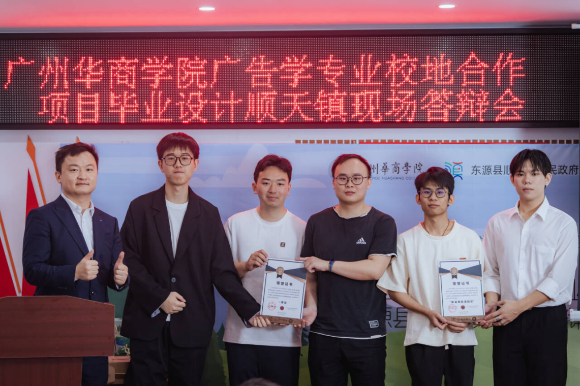 本次项目共有五组二十五位同学以顺天镇项目作为毕业的设计选题。题目涵盖农业公用品牌的策划与推广、乡村振兴风貌带的形象策划与推广、省级农业龙头企业拳头产品品牌形象策划与推广。这是广州华商学院致力于实践教学体系建设的探索,也是一次不断提高学生的应用能力和创新能力的大胆尝试。