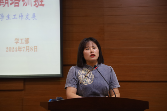 开班仪式上,许娜副校长表示,学工队伍是学校的重要组成部分,肩负着培养学生的重任。我们要时刻保持清醒的头脑,不断提高自身素质,为学生提供更好的服务。希望全体老师认真学习,有所收获。