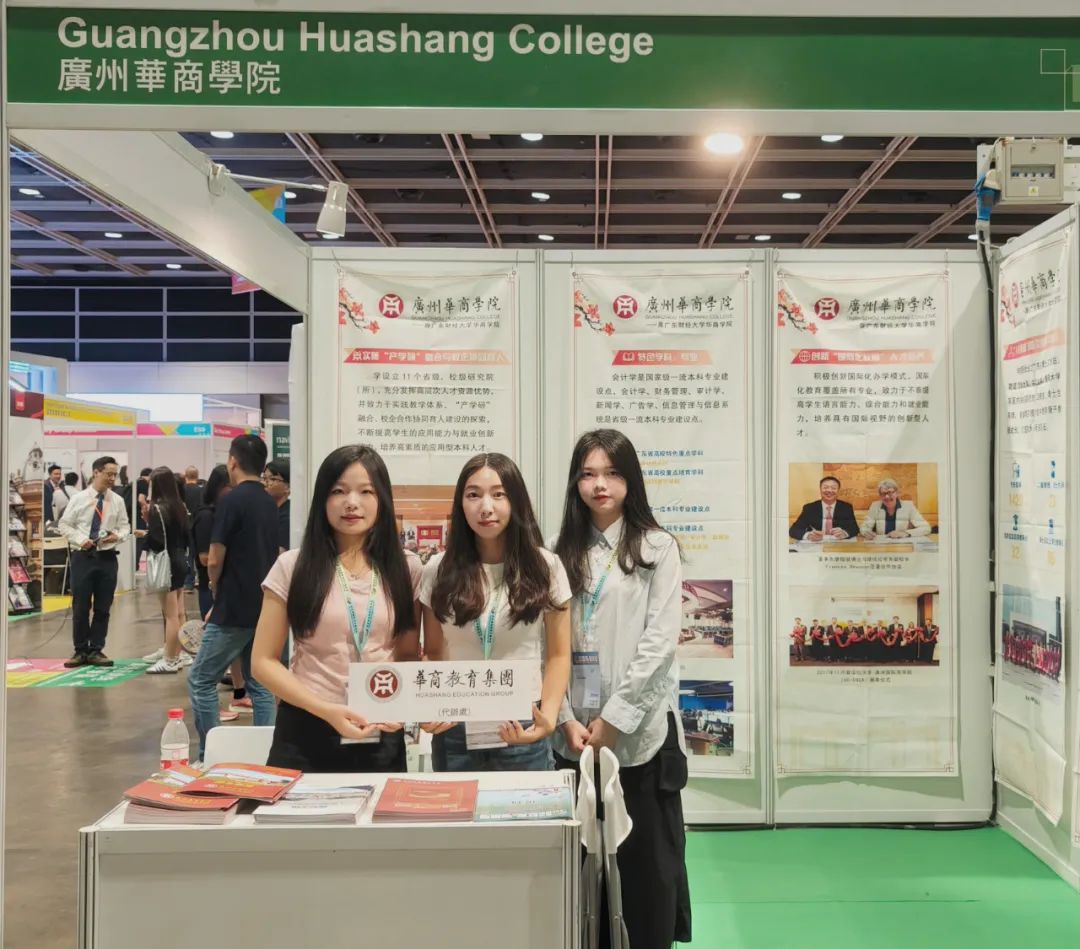 在本次教育盛会中,广州华商学院招生宣传工作人员谢银月、刘书滢两位代表老师前往香港参展,广州华商学院校长助理黄伟新、招生办公室主任姚见花、国际交流与合作处副处长熊子珂等代表领导通过线上方式参与。