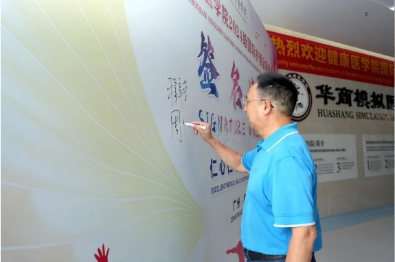 携一纸锦书邀约,启青春医路征程。2024年8月25日,广州华商学院健康医学院2024级国际护理全英班新生迈入华商广州校区,正式报到。广州华商学院副校长吕峻闽、学校顾问程辛荣、后勤保卫处处长杨燕平、健康医学院院长周光雄、国际护理全英班负责人周英巡视迎新现场,健康医学院学工副主任郑志伟、辅导员等早早就位,精神饱满地欢迎新同学。