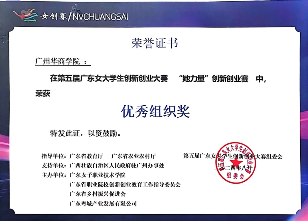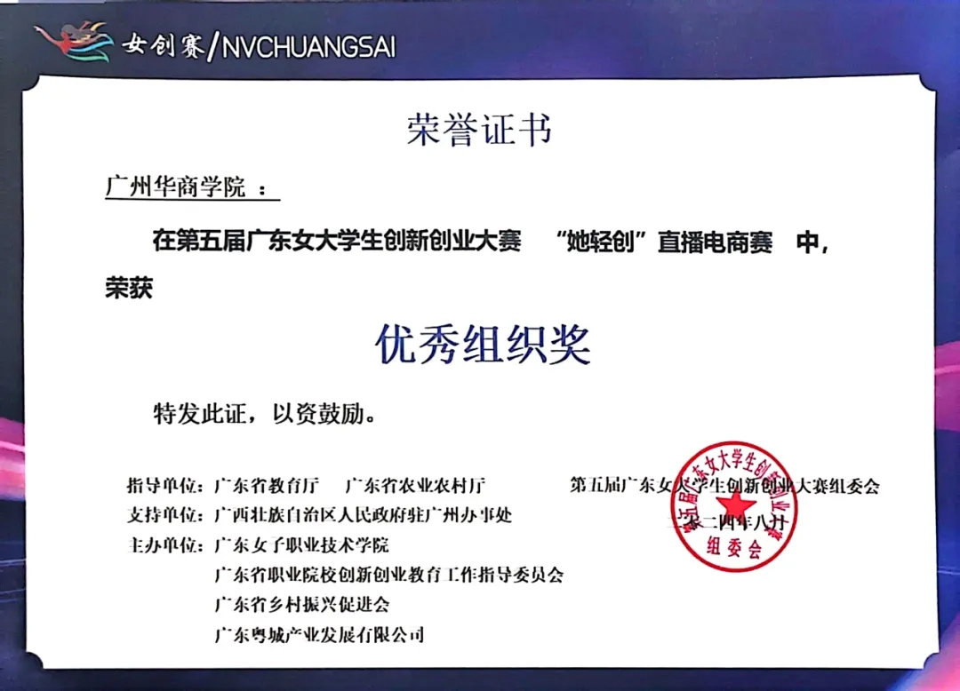 近日,由广东省教育厅、广东省农业农村厅指导,广西壮族自治区人民政府驻广州办事处支持,广东女子职业技术学院、广东省职业院校创新创业教育工作指导委员会、广东省乡村振兴促进会、广东粤城产业发展有限公司主办的第五届广东女大学生创新创业大赛“她力量”创新创业赛决赛在广东女子职业技术学院圆满落幕,我校“华明塑胶——高分子材料制成产品解决方案领跑者”项目和“借个胆儿”项目斩获银奖,广州华商学院荣获“优秀组织奖”。