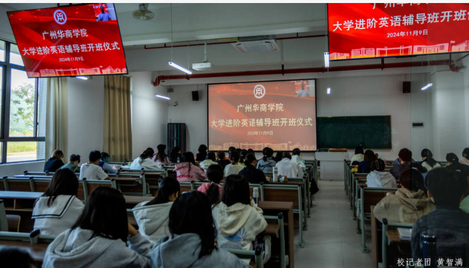 广州华商学院大学进阶英语辅导班开班仪式于2024年11月9日上午在广州校区励志楼B207举行。出席此次开班仪式的嘉宾有学校副校长许娜、学生处处长黄国富、学生处副处长马卉芳、继续教育学院院长助理钟劲康以及各二级学院辅导员代表等。开班仪式由学生处处长黄国富主持。