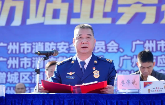 广州市消防安全委员会副主任李伟斌,广州市增城区委副书记、区长林怡辉,广州市应急管理局党委委员、副局长李晓炜,广州市总工会党组成员、副主席尹宏亮,广州市消防救援支队副支队长罗志勇、黄绍伟,广州市增城区常务副区长韩涛,广州华商学院副校长吕峻闽等出席本次活动。