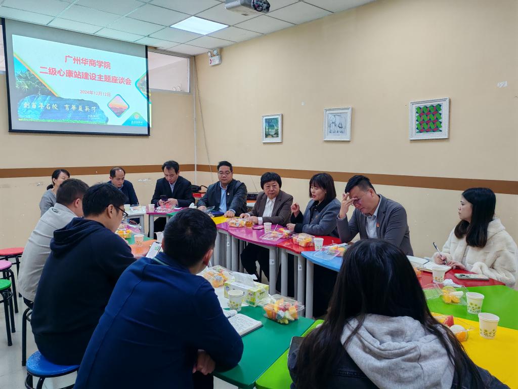 2024年12月12日上午,广州华商学院二级心康站建设工作座谈会在厚德楼B108顺利举行。学校副校长许娜、学生处处长黄国富以及各学院学工负责人、心理健康教育与咨询中心教师齐聚一堂,共绘二级心康站建设蓝图,全力商讨如何推进其建设进程,精心打造特色品牌项目,以全方位提升全校师生心理健康服务品质。