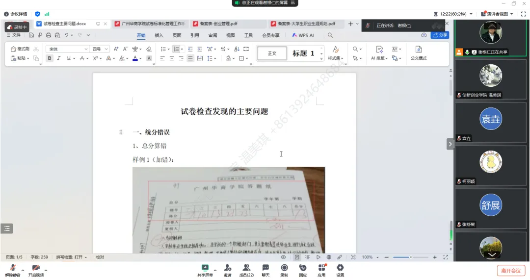 为全面加强教学质量管理,确保课程考核、试卷评阅与归档工作的规范性、准确性和高效性,推进本科教学工作合格评估内涵建设,2025年1月8日晚上,广州华商学院创新创业学院通过腾讯会议召开试卷标准化管理线上培训会议。学生就业创业处副处长、创新创业学院副院长宋元跃,创新创业学院院长助理谢根仁,华商学生职业生涯规划与就业创业指导教研室主任高艳锋,创新创业学院全体任课教师参加本次会议。