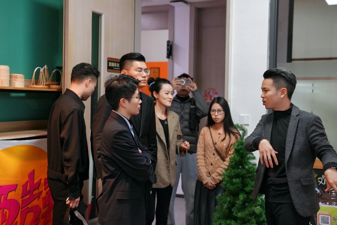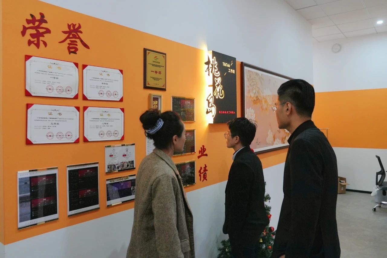 在吕峻闽副校长及相关部门负责人的陪同下,大事件科技集团创始人兼CEO汤宇先生一行参观了动漫游戏产业学院、数字贸易产业学院以及广州桃花岛网络咨询有限公司。通过实地考察,嘉宾们深入了解了广州华商学院在新媒体运营、直播运营、跨境电商等领域的前沿教学设施与实践成果,对学校在产教融合领域的积极探索有了更直观的认识。