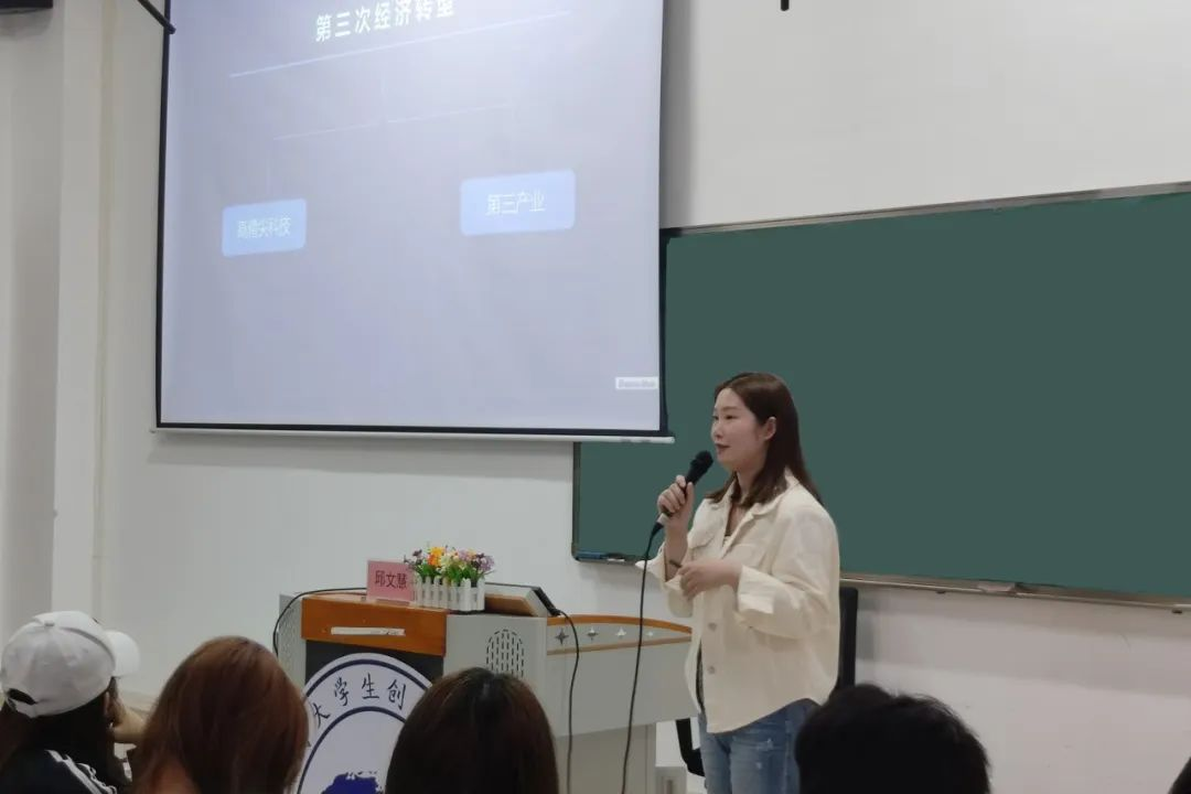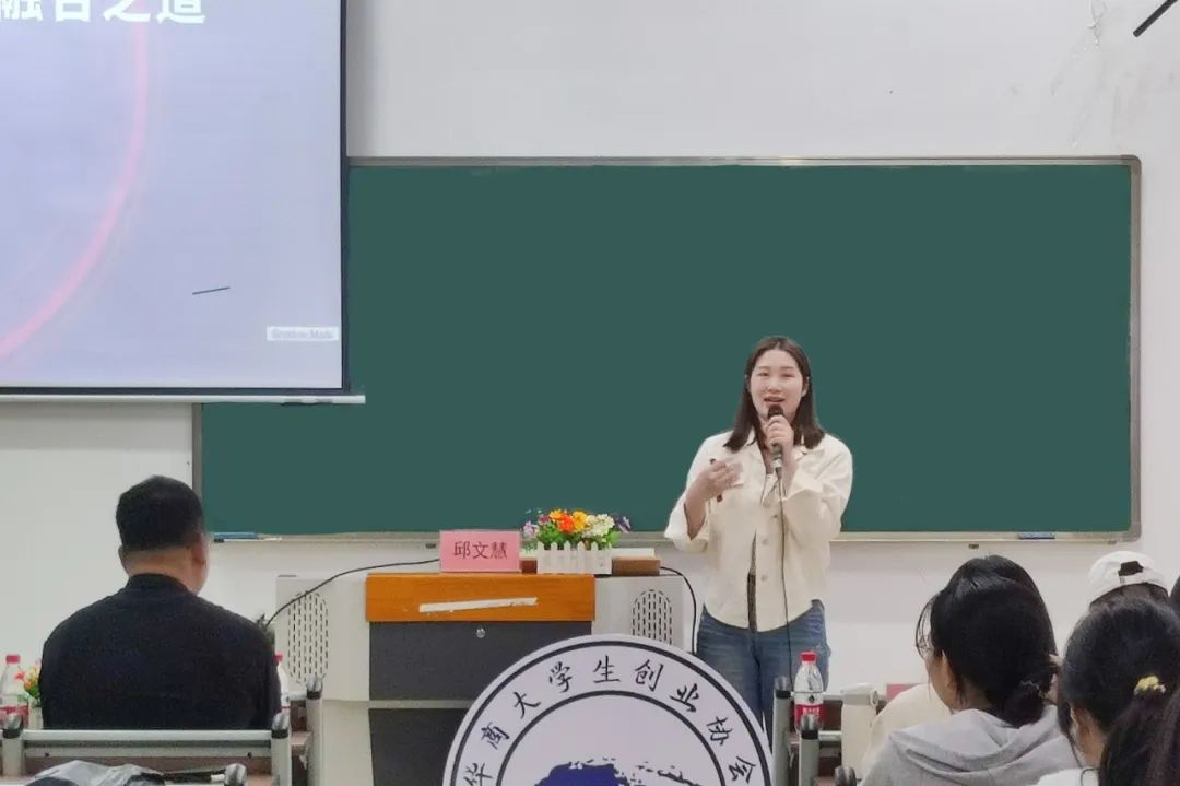 讲座伊始,邱文慧女士通过“从韭菜到创业青年的蜕变”这一互动话题,引导学生思考人生的意义与目标。邱文慧女士表示,人生就像一场游戏,需要通过不断的“打怪升级”,为生命创造更多的意义。她鼓励大家制定5年或10年的计划,明确自己的梦想,并将其与商业模式相结合,实现个人与市场的双赢。