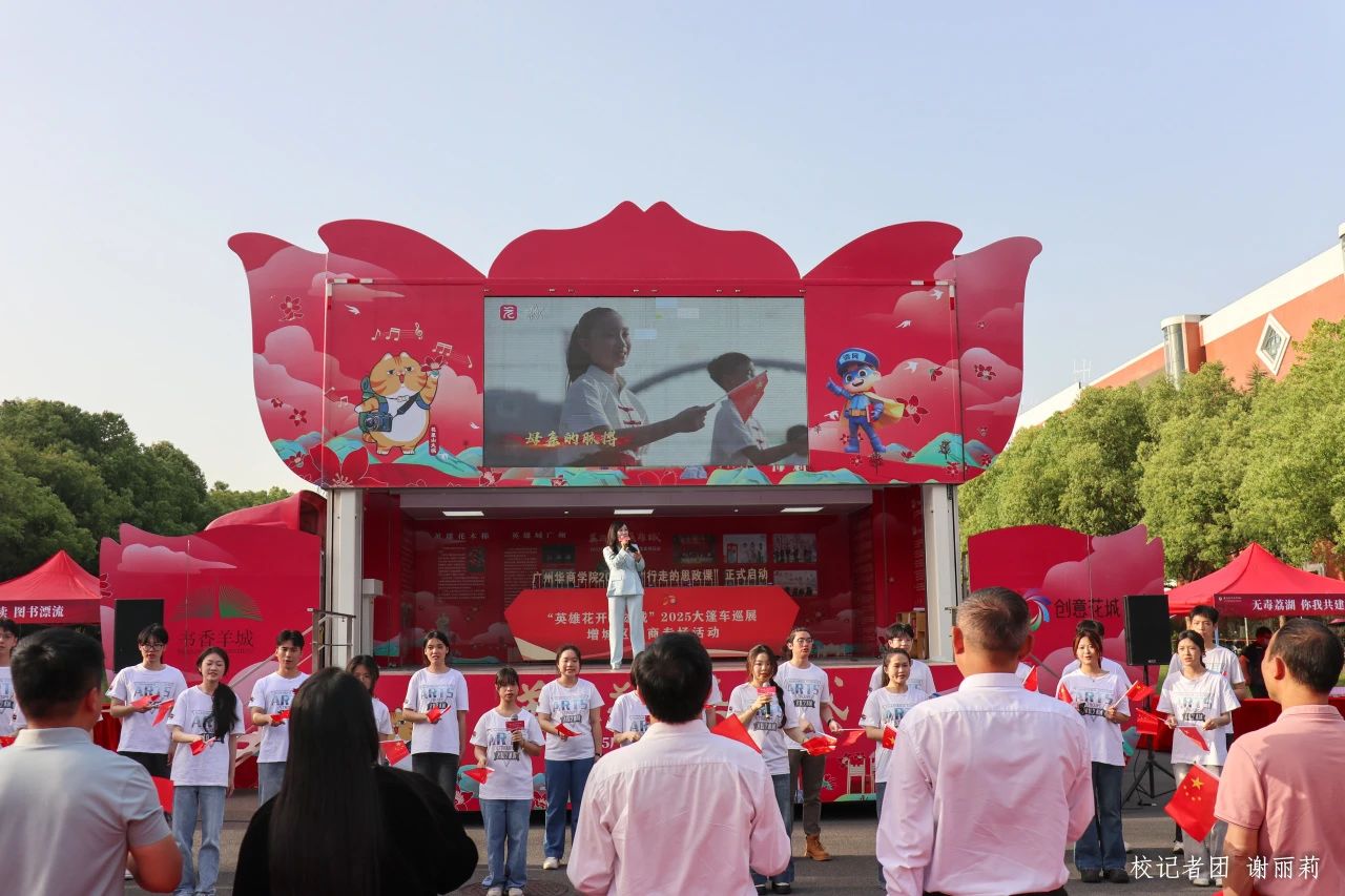 为深入学习贯彻习近平新时代中国特色社会主义思想,持续深化和传承红色基因。4月16日,“英雄花开英雄城”2025大篷车巡展增城区专场活动暨2025年广州华商学院“行走的思政课”启动仪式在“创百年名校,育华夏英才”地标广场举行。活动以“红色文化+实践育人”为核心,通过沉浸式宣讲、互动体验、仪式教育等创新形式,为全校师生打造了一堂“走新”更“走心”的大思政课。本次启动仪式采用“线上+线下”的方式进行,同步辐射数万名师生。