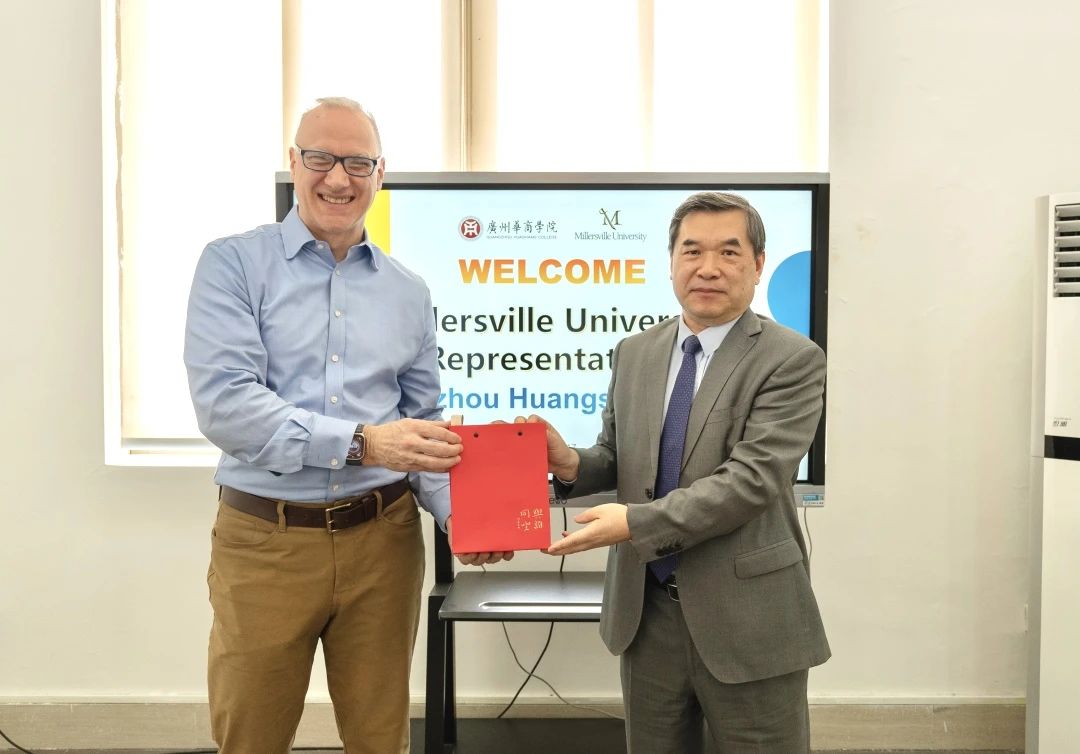4月17日,美国米勒斯维尔大学(Millersville University)商学院院长Marc Tomljanovich博士与国际招生负责人Yang Zhang女士来访广州华商学院,我校副校长廖伊曼、焦方太,国际交流与合作处处长王文忠、副处长熊子珂等热情接待了代表们。