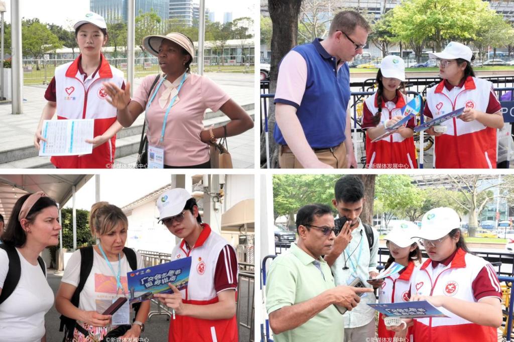 4月23日下午,华商青年志愿者们化身“多面能手”,活跃在广交会展馆的各个角落。他们以精湛的语言能力,为不同语言背景的参展商和观众搭建沟通桥梁;凭借对展馆布局的了解,用耐心和热情为访客提供场馆指引;在办证咨询台前,以细致入微的态度,为每一位客商答疑解惑,高效处理各类证件问题;面对复杂的交通状况,他们化身秩序维护者,疏导人流车流,确保交通顺畅。无论是语言交流的难题,还是场馆内方向指引,又或是证件办理的困惑、交通出行的不便,华商青年志愿者始终坚守岗位,用专业而热情的服务向来自世界各地的客商展现华商风采、传递暖心的广州温度。