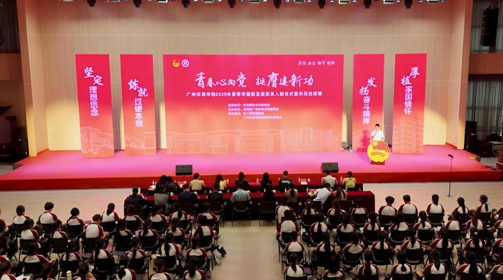 仪式上,校团委何以立老师宣布广州华商学院2025年春季学期新发展团员名单。