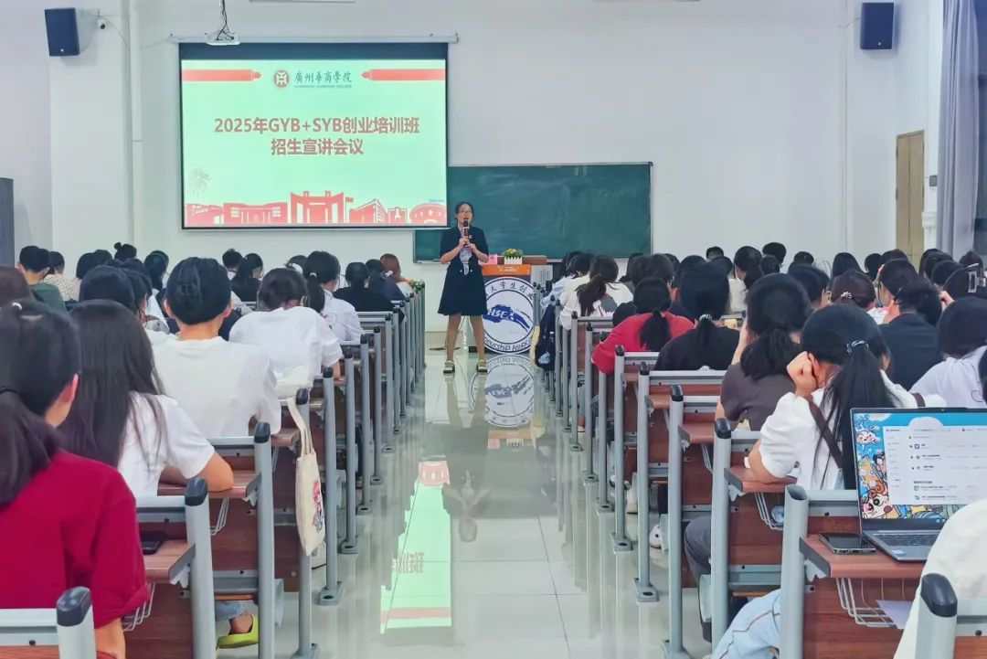 为培养学生的创新精神和创业意识,提升创新创业能力,激发创新创业热情,2025年6月10日,由广州市增城区人力资源和社会保障局指导,广州华商学院就业创业e站主办,广州华商学院学生就业创业处、广州华商学院创新创业学院、华商众创孵化基地承办,广州华商学院大学生创业协会协办的2025年GYB和SYB创业培训班招生宣讲会在广州校区励志楼C308、肇庆校区6号楼205同步举行。