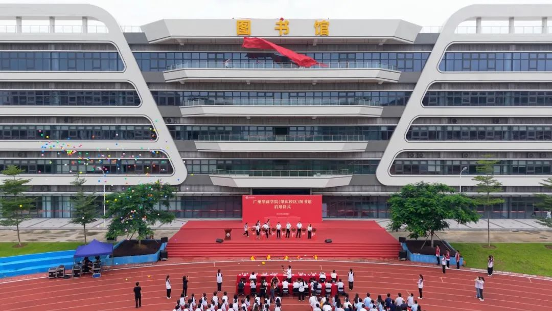 随后,校长胡军,副校长范忠宝、焦方太、余家军、许娜,华商科教集团副总裁刘文琦共同为图书馆剪彩,标志着肇庆校区图书馆正式启用。这不仅是校园硬件设施的迭代升级,为即将到来的二十周年校庆献上的一份厚礼,更是学校深度赋能教学科研、推进学校内涵式发展的精准响应。
