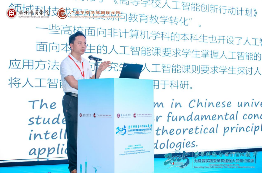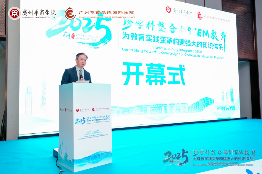 广州华商学院胡军校长在致辞中表示,广州华商学院是财经类特色鲜明的高等学府,学校长期致力于促进多学科融合协调发展,并通过深化产教融合、校企合作及国际化办学等方式,培养具备全球胜任力的创新型人才。在全球科技创新浪潮下,STEM教育已突破传统学科边界,成为各国重塑人才竞争力的战略抓手。他期待以此次国际会议举办为契机,与海内外专家学者开展深度对话,共同探索STEM教育理念创新、模式变革与路径突破,推动学校教育教学综合改革、促进学科交叉融合发展、培育具有国际竞争力的新时代人才。