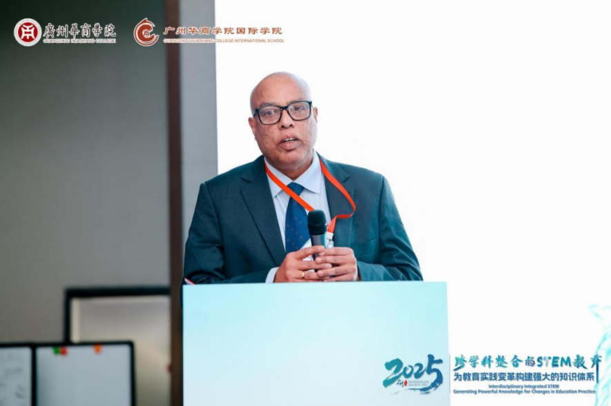 澳大利亚拉筹伯大学(La Trobe University)Premnadh Madhava Kurup博士在代表STEM领域学者的致辞中高度赞扬了广州华商学院举办本次国际会议的前瞻性理念和高效的组织协调能力。他认为,STEM教育作为推动跨学科知识整合与教育范式变革的关键驱动力,中国的专家学者们做出了很多努力和尝试,但全球STEM教育发展仍呈现出明显的区域不平衡态势,特别是在课程体系重构、教学资源整合等方面还面临诸多挑战。为此,Kurup博士呼吁,以此次会议为平台,构建更加紧密的国际合作网络,通过经验共享与资源互补,共同推进全球创新型人才培养体系的优化升级。