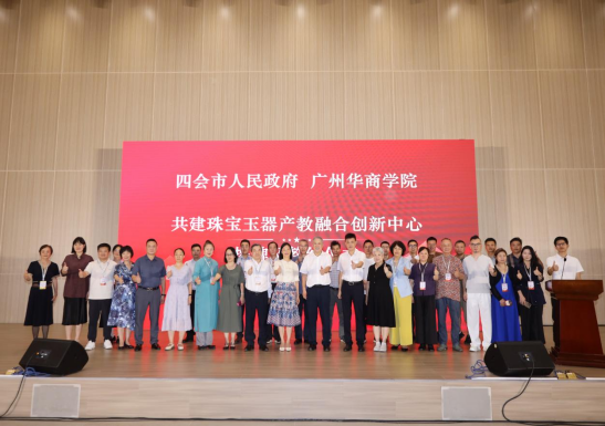 2025年6月24日上午,四会市人民政府与广州华商学院共建“珠宝玉器产教融合创新中心”签约及揭牌仪式在广州华商学院(肇庆校区)举行。四会市委常委、统战部部长、市政协党组副书记蔡雪丽,四会市珠宝玉器产业发展管理中心主任黄振敏,广州华商学院校长胡军教授、副校长焦方太教授、肇庆校区党委书记苏宁同志、校长助理覃少冰、珠宝学院院长朱晓红教授等领导嘉宾出席签约现场。参加会议的还有众多院校专家学者、业界精英、本校相关职能部门的负责人、二级学院负责人以及优秀学生代表。