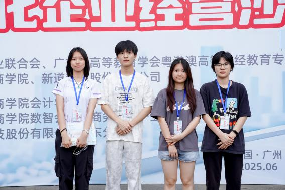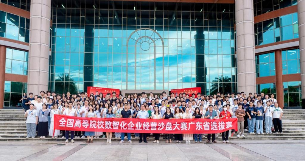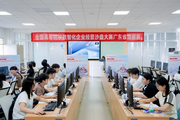 2025年6月28日至29日,由中国商业联合会、广东省高等教育学会粤港澳高等财经教育专业委员会、广州华商学院、新道科技股份有限公司联合主办,广州华商学院会计学院、广州华商学院实验教学与网络管理中心、广州华商学院产教融合办公室、数智会计与商务服务产业学院、新道科技股份有限公司广东分公司联合承办的2025年全国高等院校数智化企业经营沙盘大赛广东省选拔赛在广州华商学院成功举办。来自广东省35所高校的80支队伍,总计320名学生齐聚一堂,以企业经营模拟为舞台,展开了一场数智化管理能力的巅峰对决。