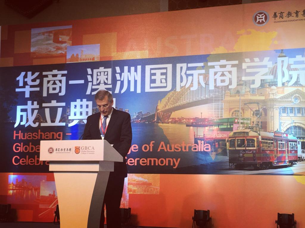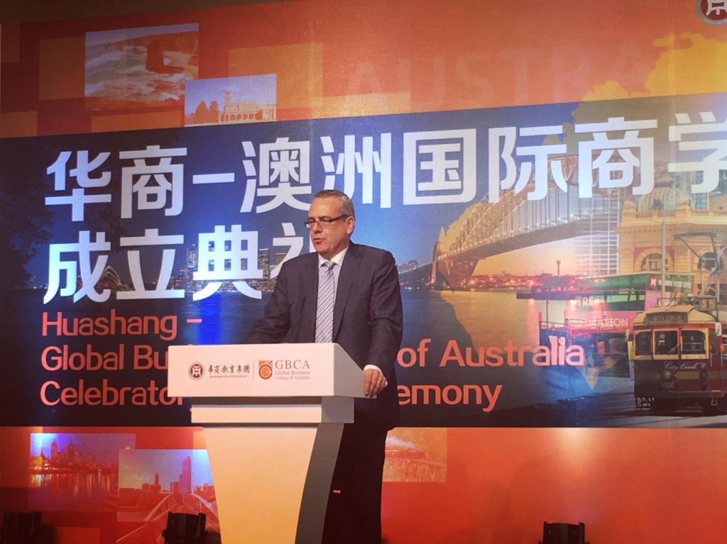 澳大利亚中国工商业委员会副主席谭安杰教授在致辞中对华商教育集团在海外办学给予充分肯定,他表示,华商教育集团创办华商澳洲国际商学院的是中澳文化、教育交流的里程碑。