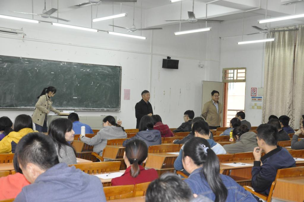 第三届辅导员职业技能大赛分初赛和复赛两个阶段。初赛于11月22日15:00在励志楼C301进行,除特殊情况外,全体辅导员都参与了笔试,学生处李希恒处长、黄国富副处长、林月娥老师、胡小娟老师监考,王锦秀副院长亲自到场巡视,查看辅导员的作答情况。经过笔试环节的激烈角逐,结合系部推荐,共有10名辅导员进入现场面试环节。