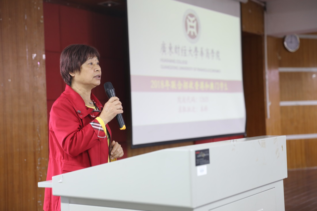 杨丽娟副院长向华文学院预科部300多名学生和家长讲解了今年联招改革政策。她表示,填报志愿要根据分数排位来科学填报,志愿间要有合理梯度。杨丽娟副院长还介绍了华商学院的办学优势和特色亮点,她欢迎同学们报考华商学院,希望与同学们在九月相约美丽的华商。