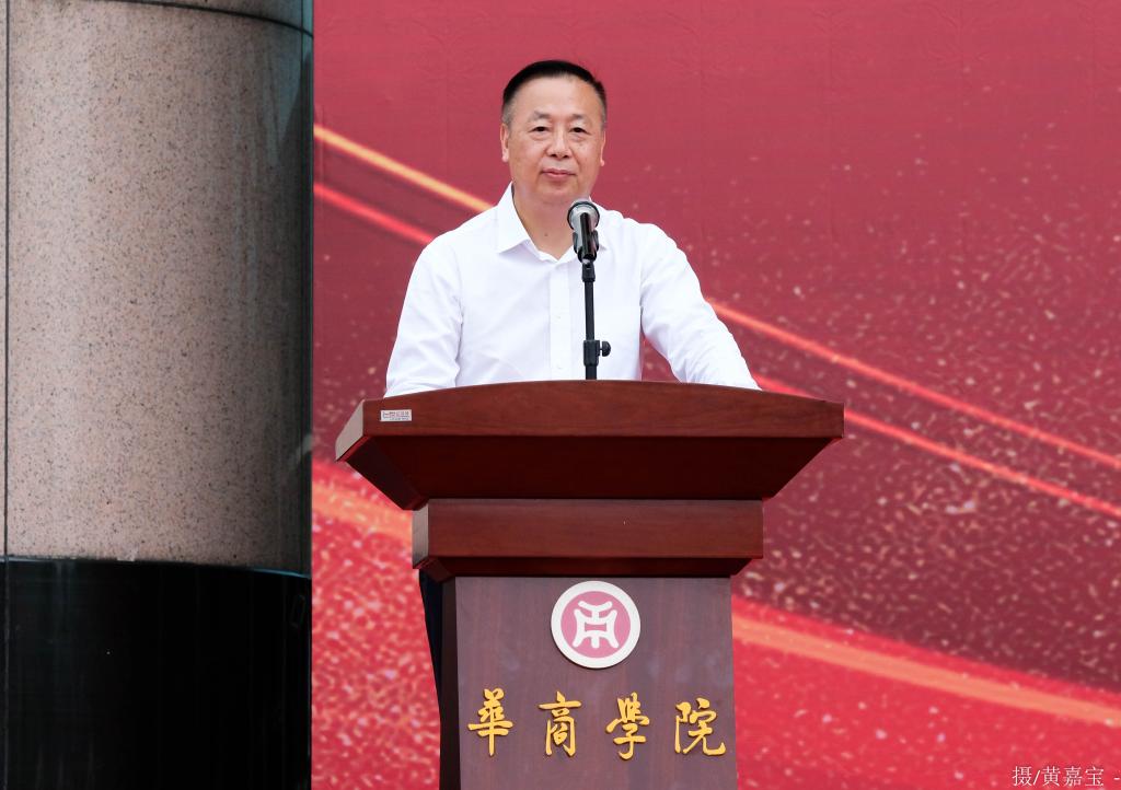 广东财经大学副校长王廷惠教授在致辞中代表母体学校对毕业生们送上最诚挚的祝贺,并对毕业生们提出了“笃定坚持理想”、“切实担当责任”、“坚韧不懈奋斗”、“永远坚持不懈”四个希望。