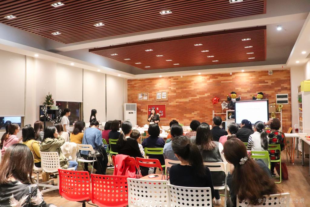 活动伊始,张楠老师首先为大家介绍了烘焙的基本知识与技巧,并现场演示制作戚风蛋糕。大家仔细倾听,认真揣摩,在老师的讲解和指导下,参与活动的老师开始尝试亲手制作蛋糕。活动现场气氛活跃,洋溢着阵阵欢声笑语,老师们开心地品尝着亲手制作的美味甜品。