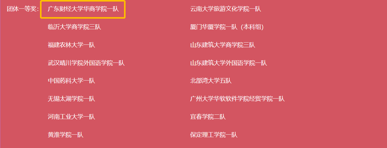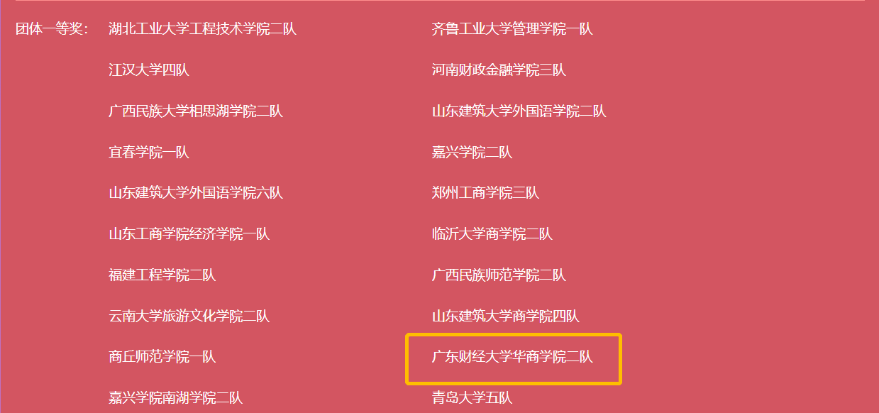 一等奖广东财经大学华商学院二队