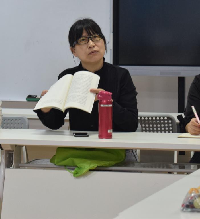 领读人辛学敏老师首先提到了《乡土中国》的一句话——“我并不认为教师的任务是传授已有知识,而是引导学生敢于向未知领域进军。”她从老师的角度,通过实际案例,强调表达与跳出模板的重要性,并鼓励学生要敢于以审视的眼光看待事物。同时也提到了在乡土社会中长老执法的作用与限制,建议道,“可以采用切换角色的方法应对在乡土与城市之间的社会需求。”