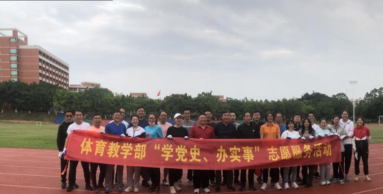 通过此次活动,作为党史理论学习和实践服务的结合,我们更加深刻地意识到体育教学部作为广州华商学院公共服务部门,在服务教学的同时,更应该饮水思源回馈社会,关心我校师生的体育锻炼环境,这也是践行华商教育集团董事长“两个服务”的一个桥梁。今后,我们将主动履行责任,与师生共建和谐、美丽、健康校园!