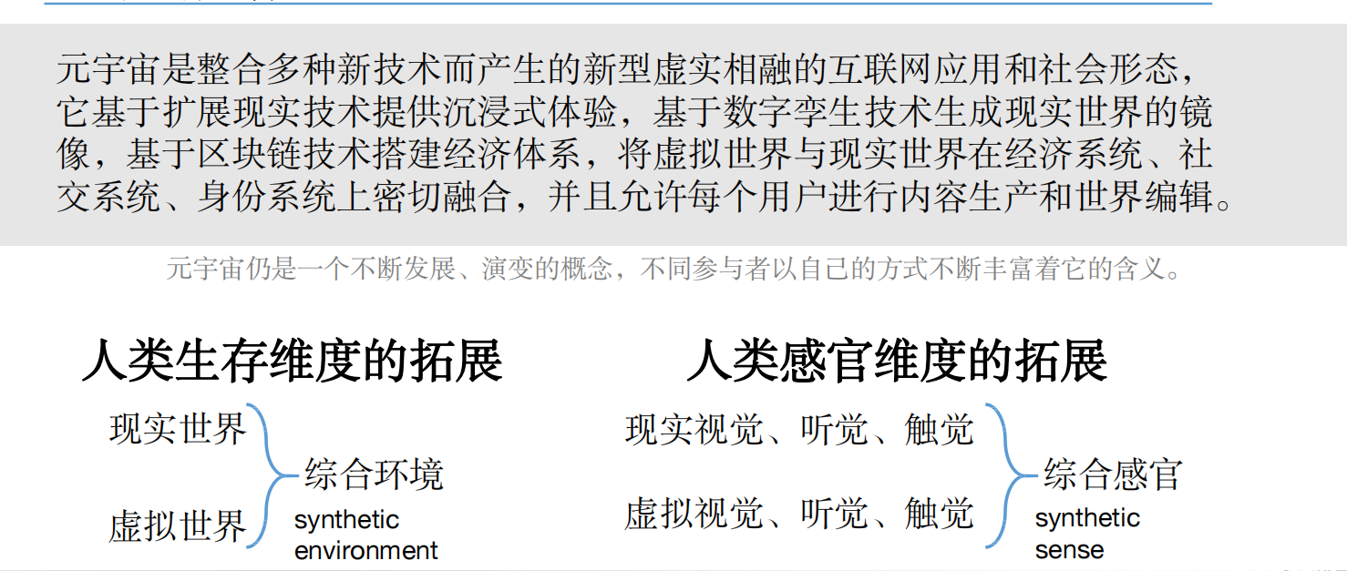 元宇宙本身不是一种技术,而是一种理念和概念,它基于VR、AR、5G、6G和人工智能、大数据等新技术的发展。我们现在强调虚实相融,但最终还是会走向更加虚拟化,还是能够反哺于现实社会,主要看VR还是AR这两种技术路线,哪一种技术路线发展得更加迅捷。