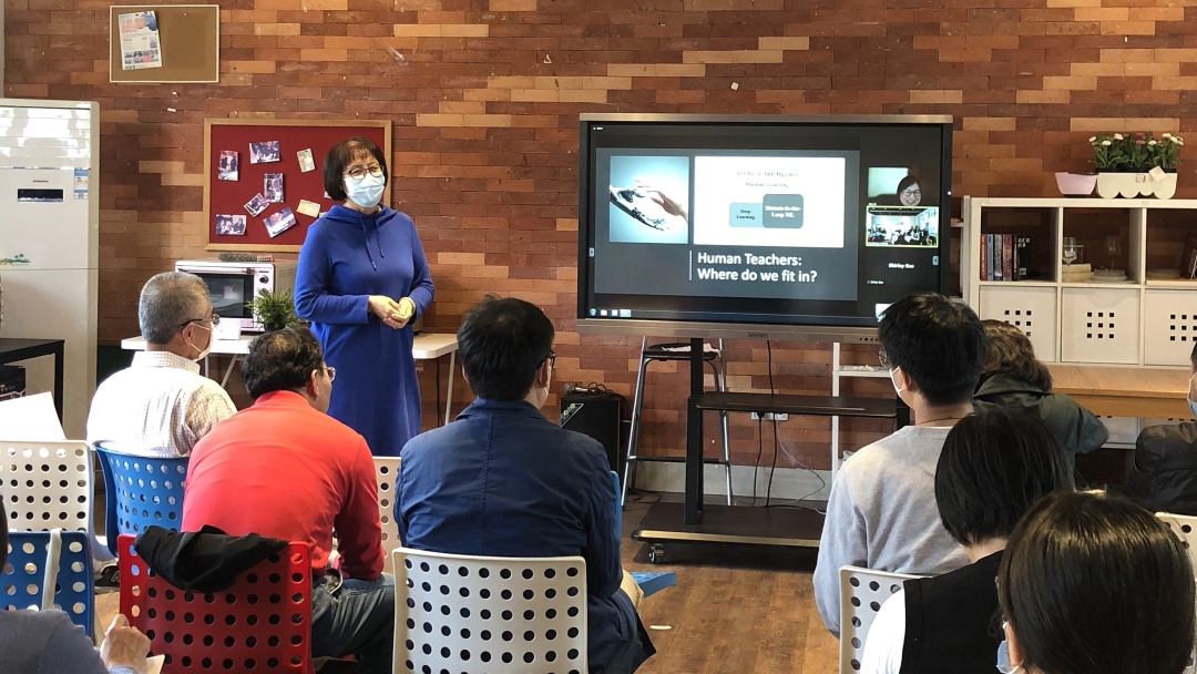 在互动环节,我校外国语学院的老师们以教师教书育人的初心出发与祁静博士互动,共同探讨了“在人工智能教育的时代,我们将如何适应”的问题。