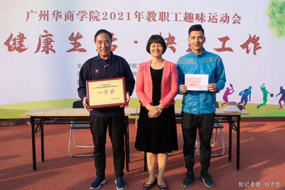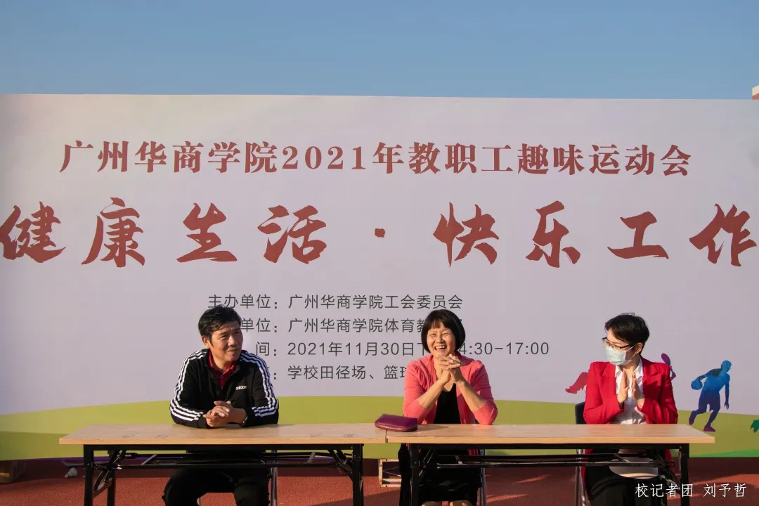 为丰富我校教职工的课余文化生活,促进教职工身心健康发展,营造团结奋进、积极向上的校园氛围,11月30日,广州华商学院2021年教职工趣味运动会在学校田径场举行。党委副书记兼副校长王锦秀、工会主席黄小兰、体育教学部主任顾伟农作为嘉宾出席了本次活动,与全体教职工齐聚田径场,共享运动带来的激情与快乐。