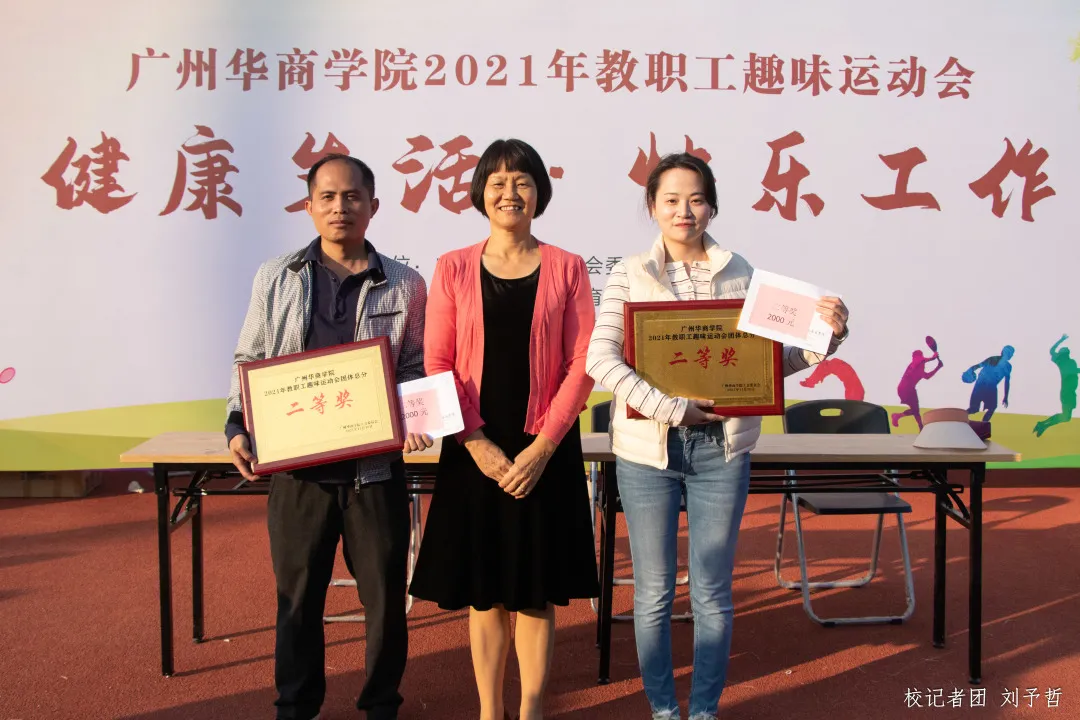 经过激烈的角逐,会计学院代表队以其完美的团队配合和积极的拼搏精神,拔得头筹。行政二队、外国语学院荣获二等奖;行政一队、文学院、管理学院、教师教育学院、金融学院及数据科学学院分别获得三等奖;经济贸易学院、传播与传媒学院、创意与设计学院及马克思主义学院获优秀奖;体育教学部获优秀组织奖。王锦秀副校长、黄小兰主席以及顾伟农主任作为颁奖嘉宾,为获奖队伍颁奖,并亲切慰问了参赛教职工。