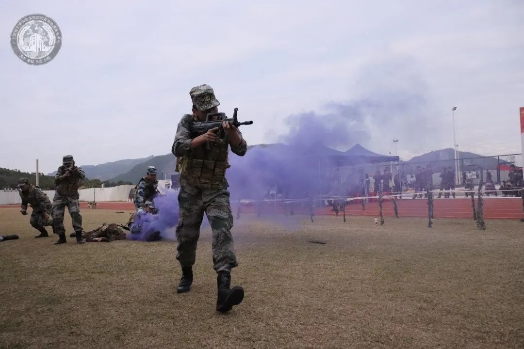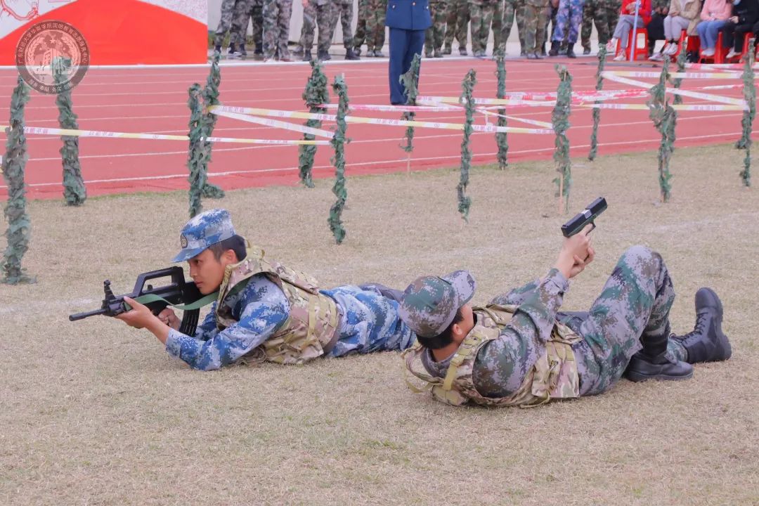 为进一步做好我校征兵宣传工作,加强我校学生国防教育,着力激发广大学生强烈的民族自豪感和国家荣誉感,营造浓厚的征兵氛围。2021年12月7日下午,在四会校区隆重举行“传承百年红色基因、助力强国强军梦想”第三届军事技能大赛。本次活动由党委武装部主办,学生工作部、团委协办。
