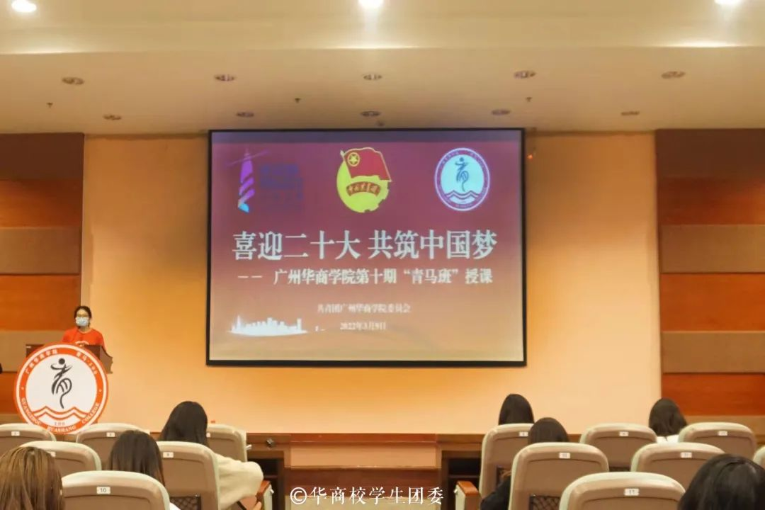 新时代的青年,青春正当时,奋斗正当时。为庆祝建团百年,激昂青春奋斗,聚焦“两会”精神,帮助学员们深刻领悟党和国家的发展战略、决策部署以及各项举措,深化学员们对于“两会”精神的学习,准确把握“两会”精神的实质和科学内涵,以实际行动迎接党的二十大胜利召开和建团100周年。广州华商学院第十期“青马班”授课于2022年3月9日18:00在国际会议中心报告厅举行。授课主讲人为校团委陈刚副书记。