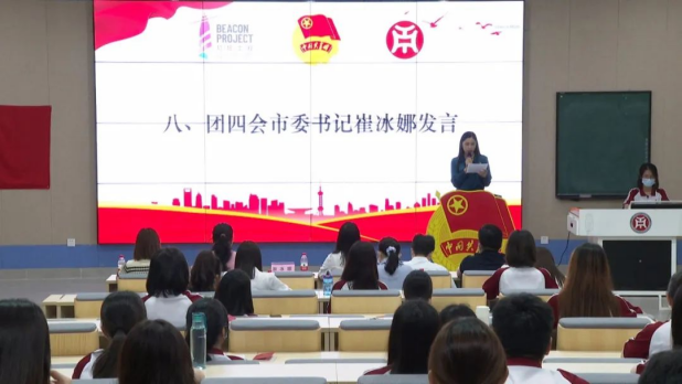 校团委陈巧巧老师发言。她代表学校团委向参加“高校英才基层计划”的团员青年提三点要求:一是作为新时代青年,要敢于担当、勇于奋斗;二是作为新时代青年,要追求进步、迎难而上;三是作为新时代青年,要脚踏实地、立足实践。她希望同学们不忘献身基层的初心、牢记追求卓越的使命、立足资源共享、优势互补、共同提高的战略需求,为四会建设青年发展型城市贡献青年智慧与力量。