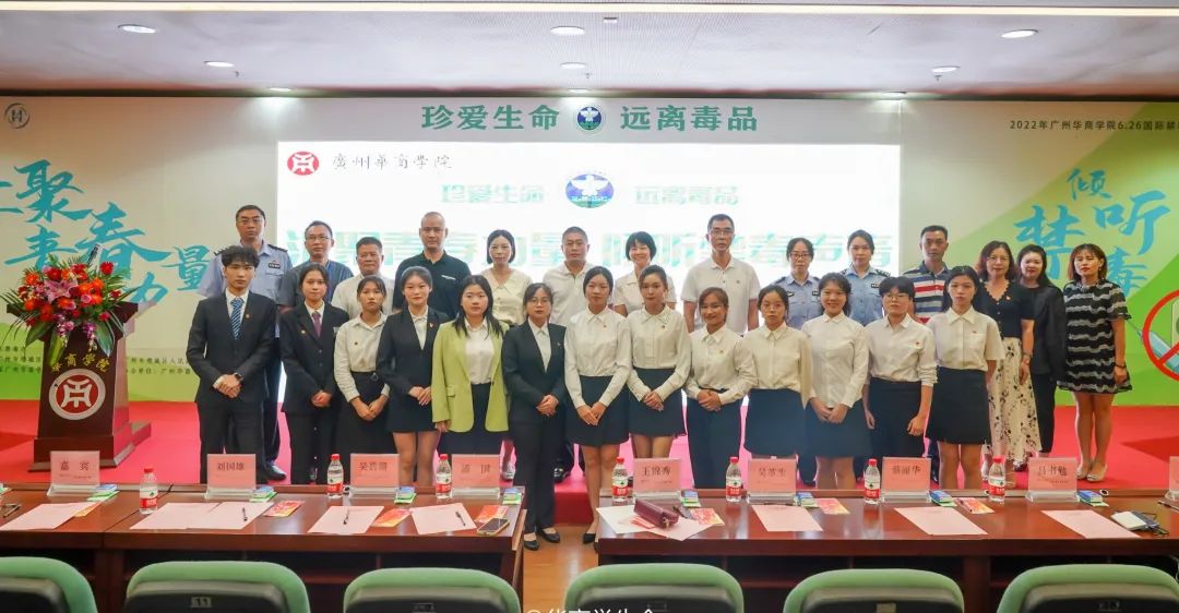 为营造浓厚禁毒氛围,筑牢全校师生禁毒意识,全面掀起开展禁毒宣传教育月活动高潮,6月26日上午,广州华商学院以第35个国际禁毒日为契机,联合荔湖街举行以“汇聚青春力量,倾听禁毒声音”为主题的禁毒演讲比赛。荔湖街党工委书记潘国,广州华商学院党委副书记王锦秀,荔湖街道办事处主任吴碧珊、荔湖街党工委副书记刘国雄,增城区禁毒办常务副主任、广州市公安局增城区分局副分局长吴革生,增城区禁毒办专职副主任蔡丽华、增城区公安分局禁毒大队副大队长邓丽滨、雁塔派出所副所长王川,校长助理许娜部长、党委办公室主任吕书勉、党委宣传部部长、校团委书记刘苗、校团委副书记陈刚等出席本次活动。