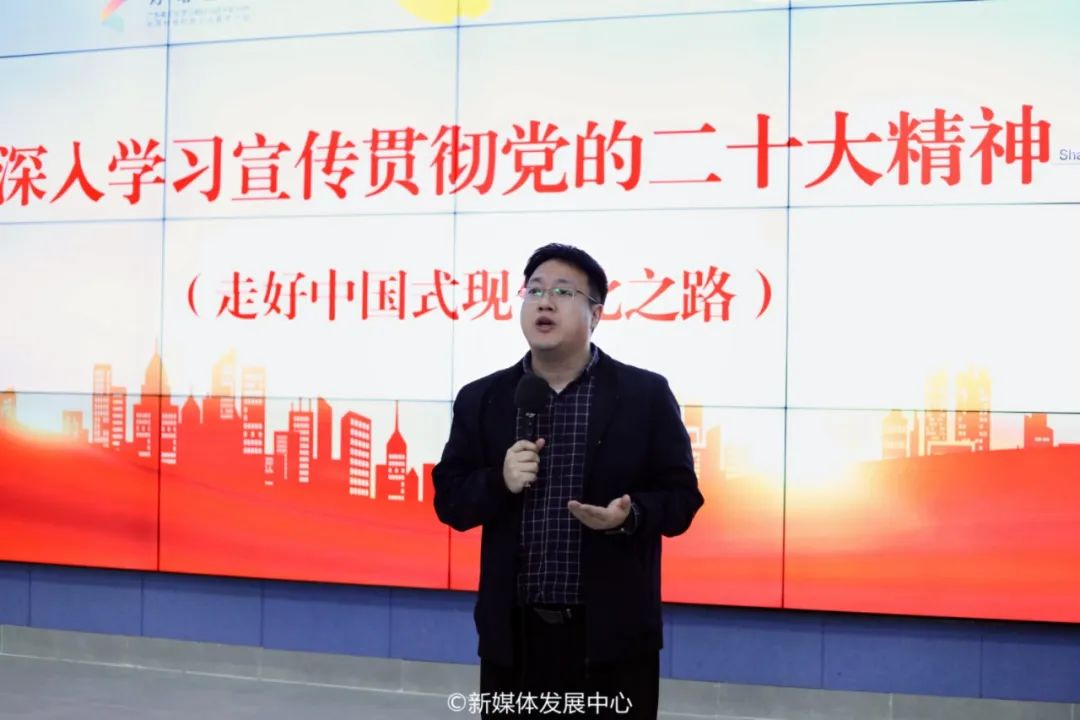 陈刚书记带领全体参会人员从理解走好中国式现代化这一角度深入学习党的二十大精神。陈书记强调,党的二十大擘画了以中国式现代化全面推进中华民族伟大复兴的宏伟蓝图。而中国式现代化,是中国共产党领导的社会主义现代化,其内涵丰富、思想深刻,是中国共产党带领中国人民开创的现代化新道路,是通向成功的最新方向和路径。中国式现代化方案具有重大理论价值和实践指导意义,广大团员青年要继续在日常学习和工作中深入学习领悟,深化思想认识。